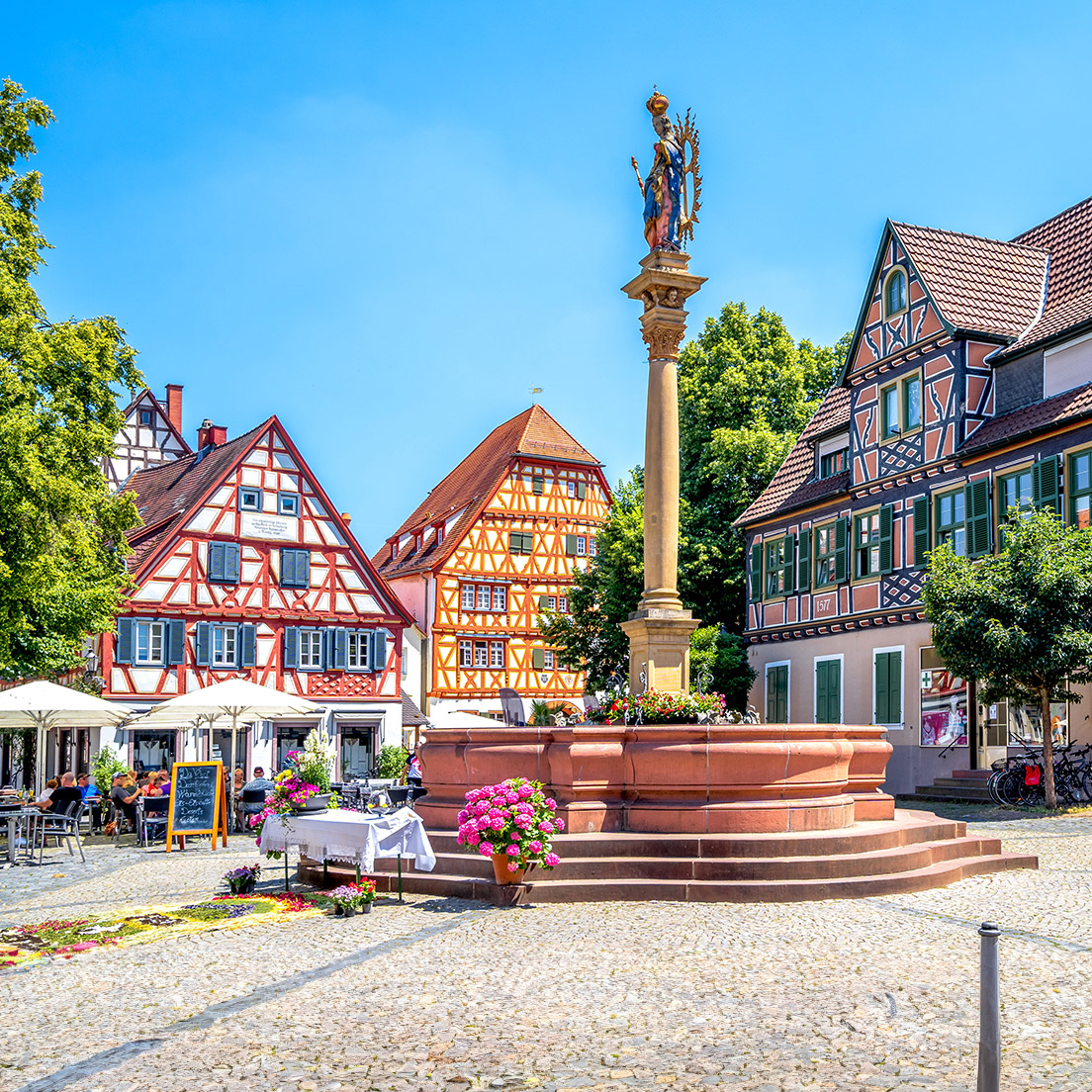 Zwischen Mannheim und Heidelberg liegt das hübsche Städtchen Ladenburg. Die Kreisstadt hat erfolgreich die Chance genutzt, ihr historische Erscheinungsbild als Modell eines zusammenhängenden maßstäblichen Stadtgefüges zu bewahren. So sind die gut erhaltenen Adels- und Bürgerhäuser aus dem 15. und 16. Jahrhundert sowie die Stadtmauer aus dem 12. Jahrhundert mit zwei markanten Türmen wirklich bemerkenswert. Vor der Stadtmauer befindet sich das ehemalige Wohnhaus von Carl Benz, das heutige Benz-Museum, und unweit davon das Benz-Denkmal. Einen Besuch wert ist auch das Lobdengau-Museum: Es beherbergt eine hervorragende ortsgeschichtliche Sammlung, u. a. mit Zeugnissen römischen Götterkultes vor Ort.